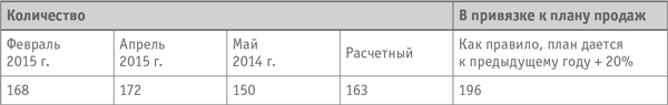 Расчет: (168 + 172 + 150): 3 = 163 ? 1,2 (считая планируемый прирост 20 %) = 196.