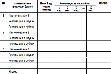 План реализации продукции
