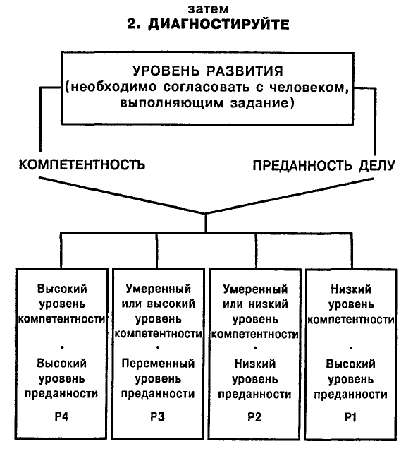 — Не совсем, — ответил Рендалл. — Когда речь идет об анализе уровня развития, мнение подчиненного берет верх. Например, если вам кажется, что вы можете работать самостоятельно, т. е. имеете уровень РЗ или Р4, а я полагаю, что вами нужно командовать, мы соглашаемся с вашим мнением — с одним условием: мы должны согласовать результаты на ближайший месяц, чтобы и вы и я могли отследить ваши успехи.