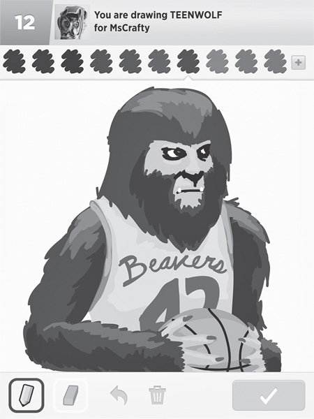 Рис. 9.2. Draw Something – это популярная игра для мобильных устройств. Пользователи играют в нее друг против друга. Один из участников рисует загаданный объект, а второй пытается угадать, что он видит