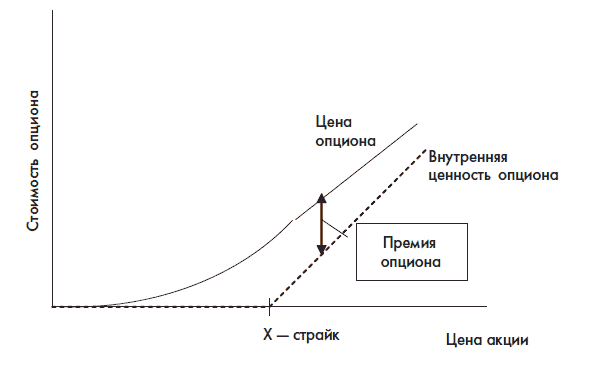 • опцион практически всегда стоит больше, чем его «внутренняя ценность»;