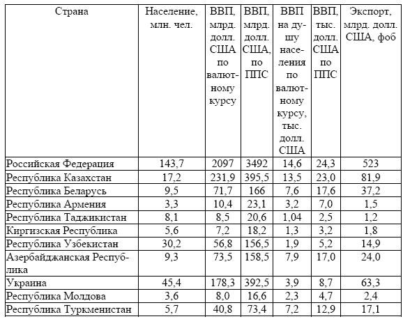 Основные макроэкономические показатели стран СНГ, 2013 г.