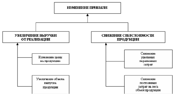 Исходя из этого, можно выявить основные направления повышения эффективности производства. Так как прибыль – это разница между выручкой от реализации и себестоимостью продукции, то увеличение прибыли будет происходить либо за счет увеличения объема выручки от реализации, либо за счет снижения себестоимости продукции, либо за счет того и другого одновременно. Выручка от реализации зависит от объёма выпуска продукции и цены на неё. Поэтому увеличение выручки от реализации возможно в случае увеличения объема выпуска продукции или изменения цены, либо за счет того и другого вместе. Себестоимость продукции предприятия складывается из суммы переменных и постоянных затрат на весь объем продукции. В свою очередь переменные издержки на весь объем продукции определяются произведением удельных переменных затрат и объема производства продукции. Постоянные издержки не зависят от изменения объема выпускаемой продукции. Поэтому снижение себестоимости может быть вызвано снижением удельных переменных затрат или снижением постоянных затрат на весь объем продукции.