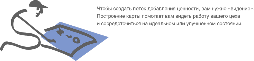 Когда речь идет о производственном потоке, то обычно на ум приходит поток, связанный с перемещением материалов внутри завода. Однако имеется и другой поток – информационный, который сообщает каждому процессу, что производить или что делать дальше. Материальный и информационный потоки – две стороны одной медали. Вы должны представить на карте оба этих потока.