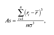 Коэффициент асимметрии представляет собой нормированную величину третьего центрального момента и определяется по формуле:
