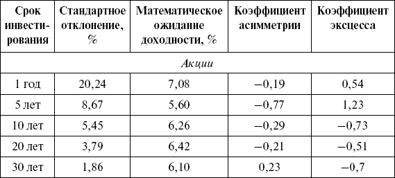 Расчеты коэффициентов асимметрии и эксцесса для разных временных горизонтов инвестирования представлены в табл. 8.4.