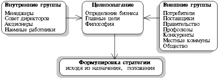 На целеполагание и формулировку стратегии влияют разные внешние и внутренние группы (рис. 3).