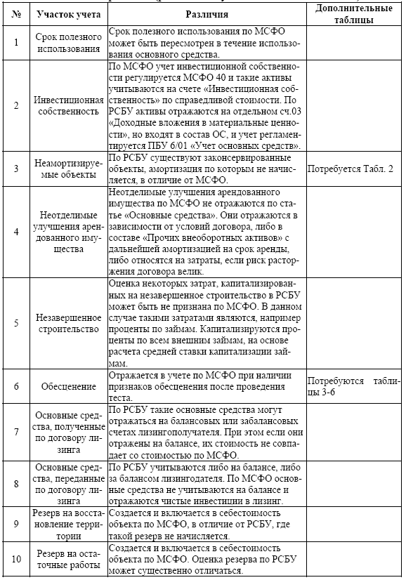 В ходе анализа данных стандартов были выявлены некоторые отличия от российского положения по бухгалтерскому учету. Данные различия представлены в табл. 1.