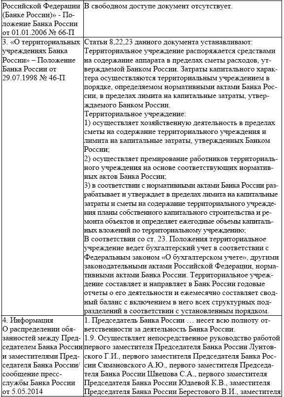 Необходимо исследовать официальные источники, которые содержат информацию о процессе финансового планирования в Банке России (см. табл. 3.1).