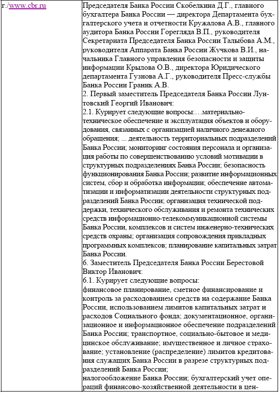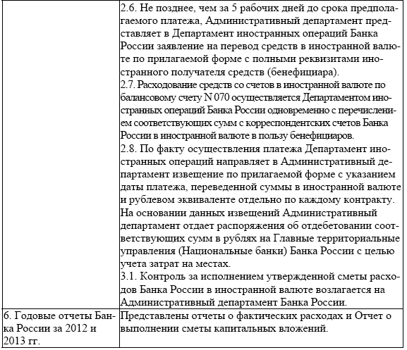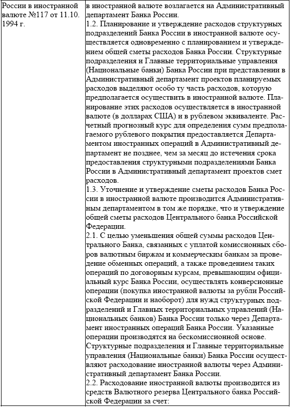 • документов о процессе финансового планирования в Банке России в свободном доступе нет. Единственный доступный и конкретный документ – указанный в п. 5 таблицы Порядок планирования, утверждения, исполнения и контроля сметы расходов Банка России в иностранной валюте № 117 датируется 11.10. 1994 г., что вызывает сомнение о его актуальности.