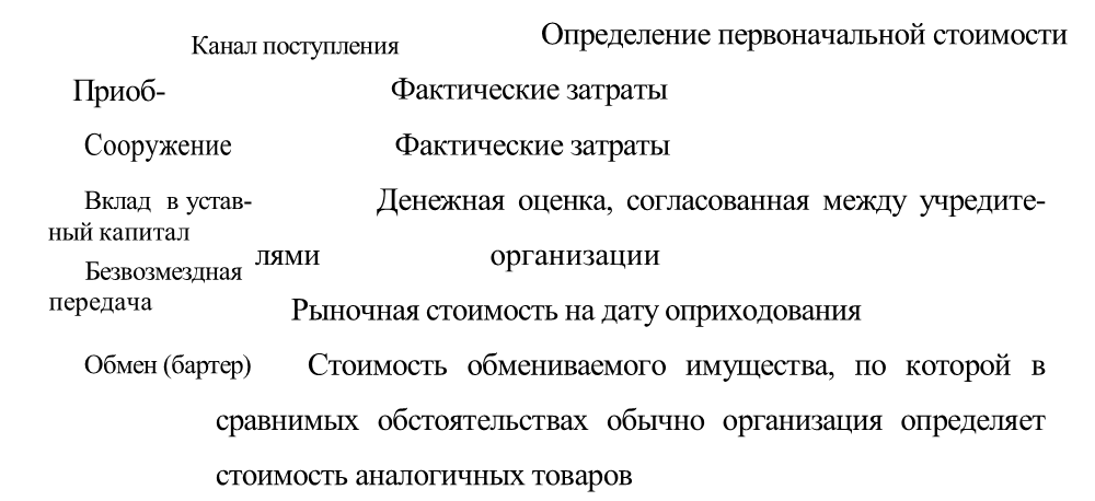 Первоначальная стоимость определяется с учетом канала поступления основных фондов (табл. 4.1).