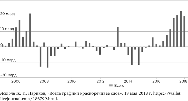 Кстати, американский инвестор в среднем куда рациональнее нашего. Например, он понял, что в фондах активных инвестиций ловить нечего, и годами переводит капитал в пассивные фонды. Но когда он прислушивается к интуиции, то делает то же самое, что и наш. Американцы точно так же вводили капитал в рынок в 2007 году и выводили в 2008–2009 годах. Подобное бывало и раньше.