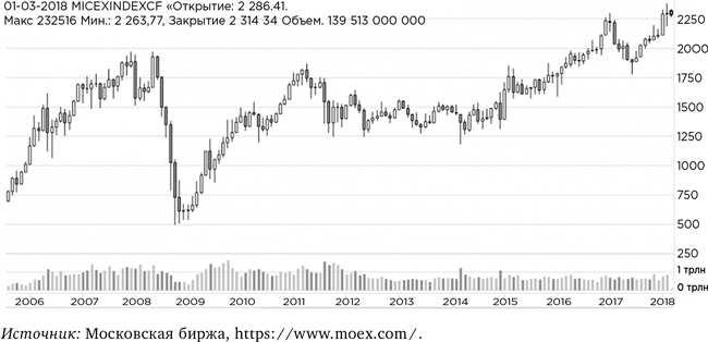 В 2006 и 2007 годах — пик заноса. Индекс рос, надо было успеть купить его по 2000 пунктов, чтобы не упустить. Не упустить что? Вероятно, кризис 2008 года, когда индекс упал до 500 пунктов. Здесь интуиция снова шепчет — быстрее продавать, а то опять не успеешь. Кое-кто «сыграл» филигранно: купил ровно на 2000 и продал ровно на 500, взяв максимум движения цены. В пересчете на деньги это означало «обеднеть на три четверти». Но это талант, а в среднем брали –1000 пунктов.