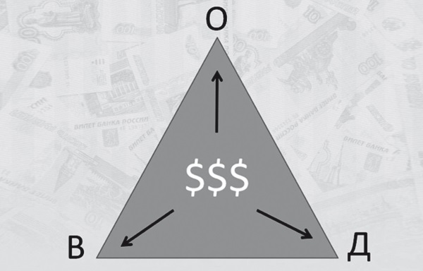 Есть три точки, от которых зависит ваше финансовое положение. На рисунке они представлены в виде вершин треугольника.