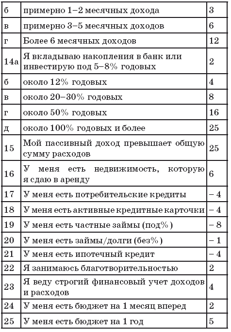 Выделите ваши цифры напротив верного ответа и посчитайте.