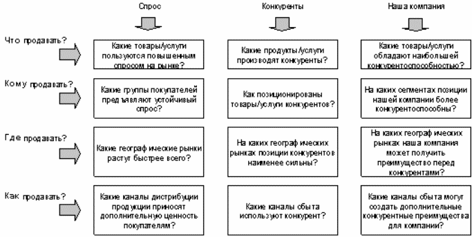 Рис. 1. Вопросы, задаваемые при разработке продуктово-рыночной стратегии