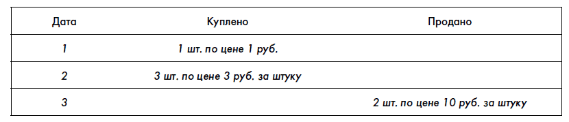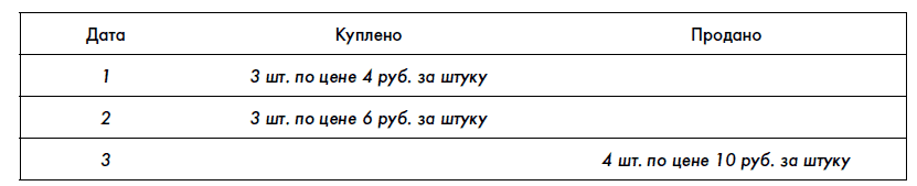 • первая пришедшая на склад в хронологическом порядке единица товара первой же и списывается на себестоимость. Это принцип «первым пришел, первым ушел» (first-in-first-out, или FIFO):