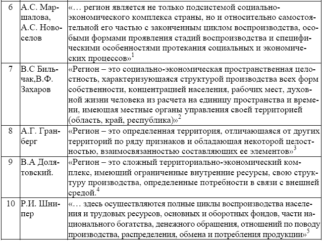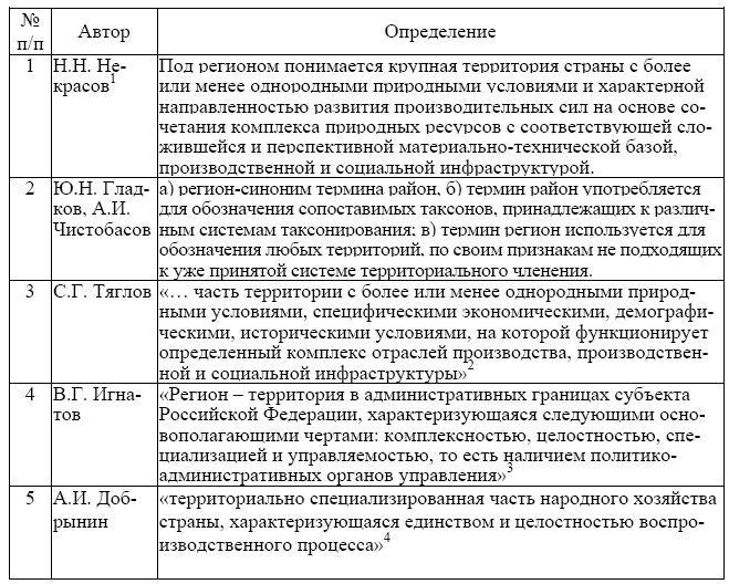 Таблица 6.1 Авторские формулировки термина «регион»