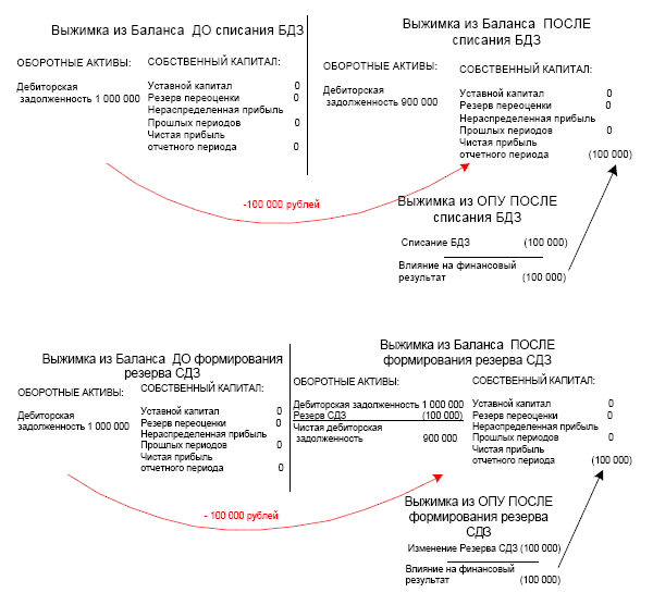 Таким образом, разница между БДЗ и СДЗ – в том, что БДЗ списали и забыли, а под СДЗ сформировали Резерв.