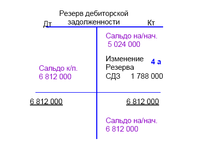 a) Либо вы корректируете Резерв СДЗ: ведь на начало года ваш Резерв был равен 5 024 000 рублей, а на конец года он уже составил 6 812 000 рублей – на разницу между начальным и конечным сальдо Резерва, т. е. 1 788 000 рублей.