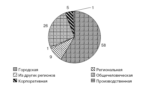 Приведенные на рис. 1.29 данные свидетельствуют о ярко выраженной локальной специфике материалов. Однако относительно высокая доля непривязанных к региону и городу материалов говорит о том, что не во всем фокус газеты идеален.