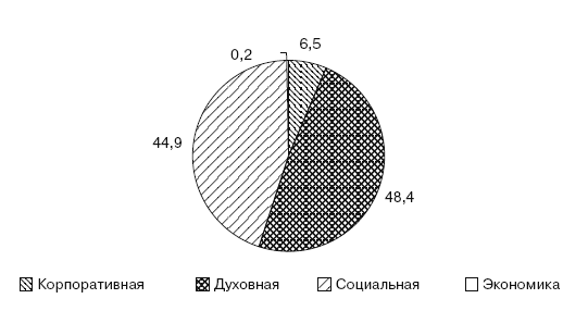 Если рассмотреть сферы деятельности, то несложно заметить, что подавляющее большинство материалов относятся к духовной сфере (культура, досуг, спорт, религия) (рис. 1.30). Не очень понятно наличие целой полосы для исповедующих ислам (при отсутствии оной для православных), к тому же она не ориентирована на мусульман города, а представляет собой обзор мусульманских традиций и новостей со всей России (поэтому неясно, чем она отличается от специализированных изданий и программ центральных или кабельных каналов).