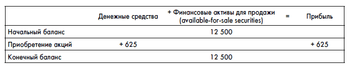 Давайте рассмотрим принципы учета ценных бумаг, доступных для продажи, для сравнения на том же примере, что и для торговых бумаг.