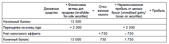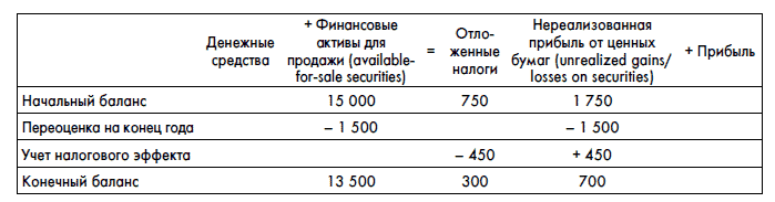 31 декабря 2006 г. акции ССС торгуются на бирже по 30 руб. за акцию. АВС не стала их продавать и по-прежнему владеет акциями ССС. А вот здесь уже начинаются различия. Потенциальные (нереализованные) прибыли и убытки от переоценки таких ценных бумаг до момента продажи бумаг будут показаны не в прибыли, а на счете нереализованных прибылей и убытков от продажи краткосрочных инвестиций, который входит в состав собственного капитала в пассиве баланса: