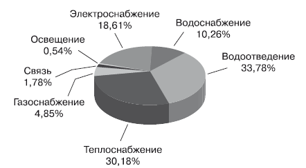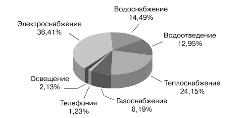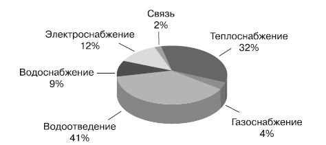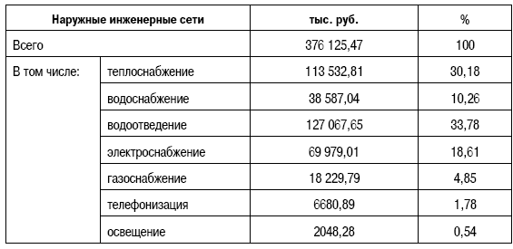 Структура затрат по видам наружных инженерных сетей в их общей стоимости представлена на рис. 7.4.