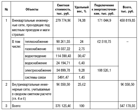 Таблица 7.11. Сметная стоимость инженерной инфраструктуры