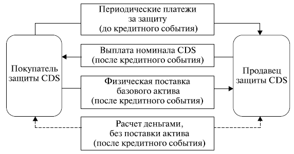 Наибольшее распространение на рынке инструментов синтетической секьюритизации получили CDS. Главной отличительной особенностью CDS от TRORS является то, что инвестор не принимает на себя риск колебаний рыночной цены – т. е. он не получает выгод от ее роста, но и не компенсирует разницу в случае ее снижения. Инвестор принимает на себя только риск дефолта эмитента базового актива. Базовым активом может выступать кредит, облигация, суверенный риск при трансграничной сделке и в других случаях, где возможно неисполнение обязательств. В качестве расчета при наступлении кредитного события может использоваться как физическая поставка базового актива, так и перечисление его ликвидационной стоимости в денежной форме.