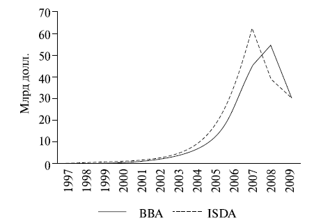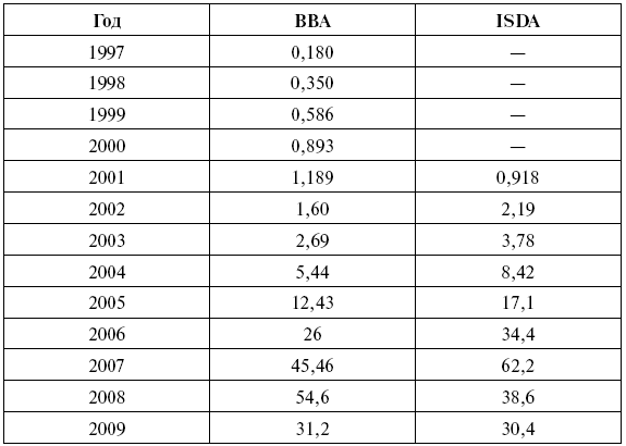 Систематизированная информация по рынку CDS в настоящее время в целом отсутствует, так как операции совершаются на внебиржевом рынке в виде двусторонних сделок. В настоящее время наиболее полные данные по рынку CDS предоставляют две организации: ВВА (British Bankers’ Association) с середины 90-х годов XX в. и Международная ассоциация свопов и деривативов (ISDA) с начала 2001 г.