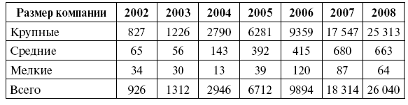 По приведенным данным можно сделать вывод, что рост рынка на протяжении всего срока обеспечивался за счет крупнейших компаний, которые и определяли развитие кредитных деривативов. Средние и мелкие компании почти не влияют на общий рост рынка – их объем сделок незначителен.