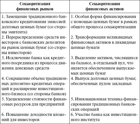 Принципиальные отличия секьюритизации финансовых рынков от секьюритизации финансовых активов