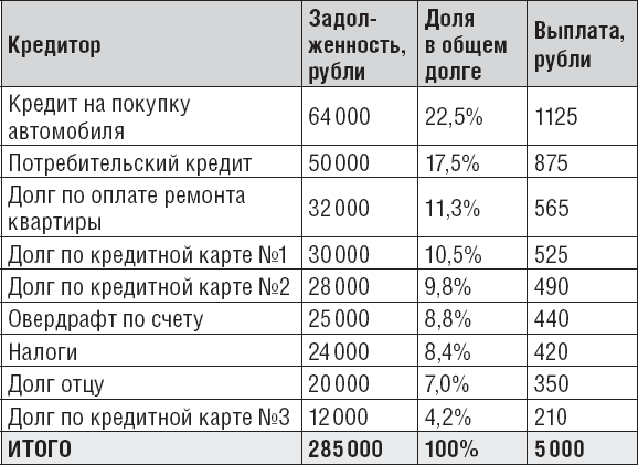 Начните с малого. Помните, что важен не размер долга; определяющий фактор – ваша способность вернуть долг, и только вы способны определить ее масштаб. Возможно, оказалось, что в вашем финансовом плане есть излишек, – в таком случае для выплаты долгов можно использовать эту сумму. Однако, скорее всего, вам пришлось сокращать расходы, чтобы свести баланс, и теперь вы с трудом представляете себе, где взять деньги на возврат долгов.