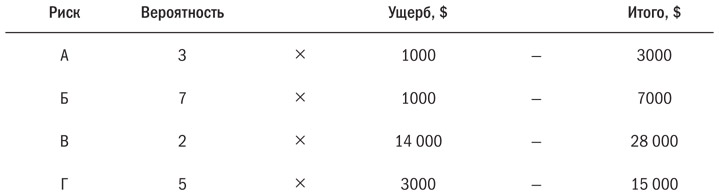 В соответствии с данными таблицы главное внимание команды должно быть направлено на проект В из-за высокой стоимости риска по нему: $28 000. По тому же принципу можно определить негативный эффект для графика или распределения ресурсов.