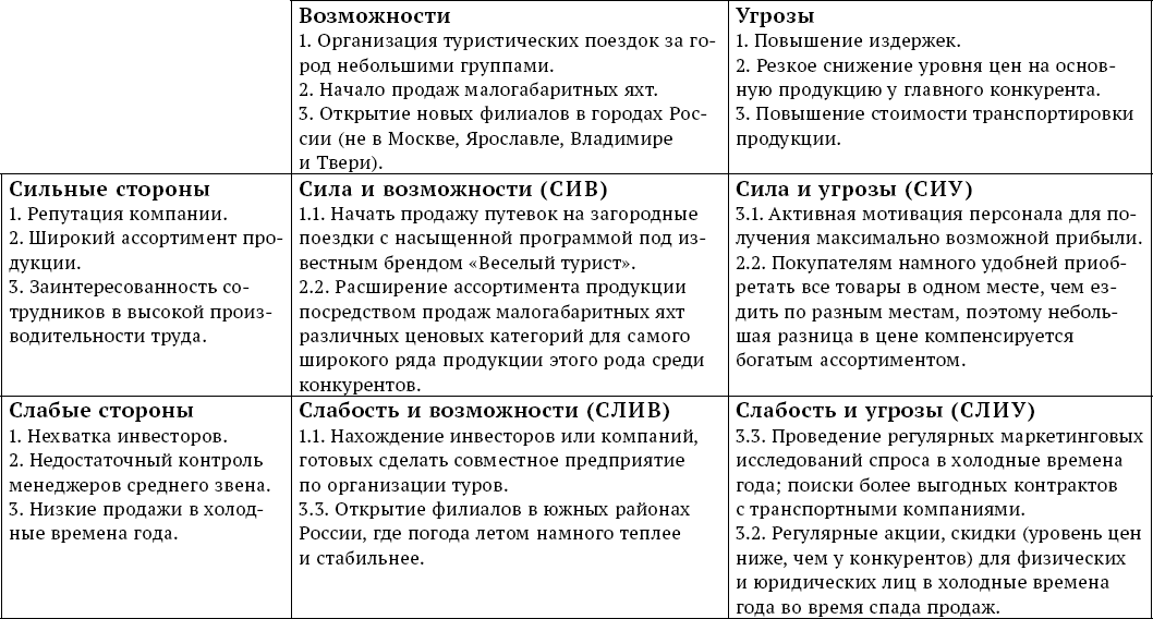 Рис. 22. Матрица SWOT для компании «Веселый турист»