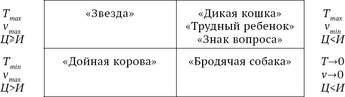 Осуществляя продуктовую стратегию, компания должна решить несколько важных для себя задач. Во-первых, возможен вариант, что «дикая кошка» не найдет признания рынка и превратится в «бродячую собаку». Поэтому необходимо иметь в запасе несколько «диких кошек» и, может быть, запускать сразу не одну, а несколько «кошек». Во-вторых, очень важно отследить прием, который оказывает рынок каждой из «диких кошек», выделить из них «звезду» и именно ее производство начать быстро увеличивать. Не менее важно быть готовым к тому моменту, когда «звезда» имеет шанс стать «дойной коровой», и резко увеличить ее выпуск, с тем чтобы не упустить возможную выгоду. И, наконец, очень опасно прозевать превращение «дойной коровы» в «бродячую собаку», когда ее предложение на рынке будет больше спроса.