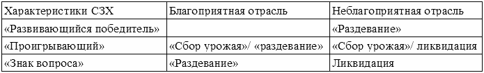 Выбор стратегии ухода определяется характеристикой СЗХ и интенсивностью конкуренции в отрасли (табл. 9.3).