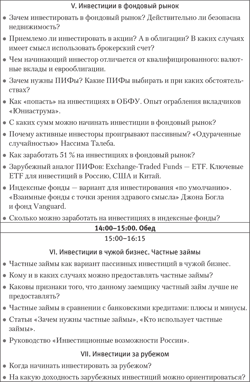 Если Вы считаете, что плата за тренинг слишком высока, – подумайте о том, какой у Вас сегодня мог бы быть инвестиционный капитал, если бы Вы начали планомерно заниматься инвестициями хотя бы пять, а тем более десять лет назад! Скорее всего, речь идет даже не о миллионах рублей, а о миллионах долларов. А если Вы уже успешный инвестор, то и сами отлично знаете, какой дополнительный доход Вы сможете извлечь из каждой инвестиционной идеи, полученной на нашем тренинге.