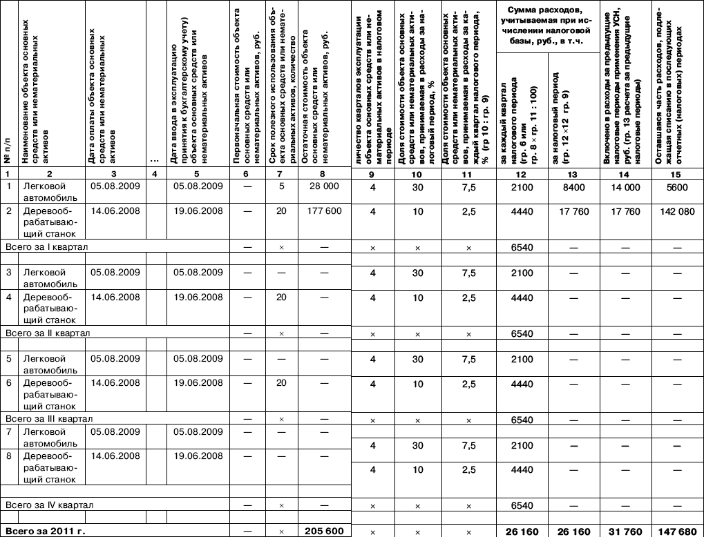 Если основное средство служит от 3 лет 1 месяца до 15 лет, то его остаточная стоимость списывается на расходы в течение трех лет применения упрощенной системы налогообложения. Причем в первый год включается в расходы 50% его стоимости, во второй – 30%, в третий – 20%. Расходы учитываются равными долями поквартально.