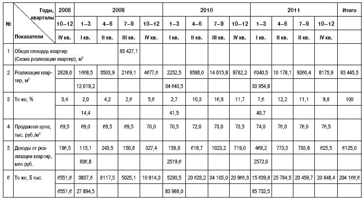 Процесс продажи квартир в квартале «Жемчужная премьера», отражающий тенденции развития рынка недвижимости в 2008–2011 гг., графически представлен на рис. 8.1.