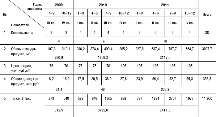 В 2009 г. продано 12,1 тыс. м2, или 14,4 % общей площади квартир. Продажная цена также была недостаточно высокой и максимально составляла 70 тыс. руб. за м2; сказалось влияние общемирового экономического кризиса.