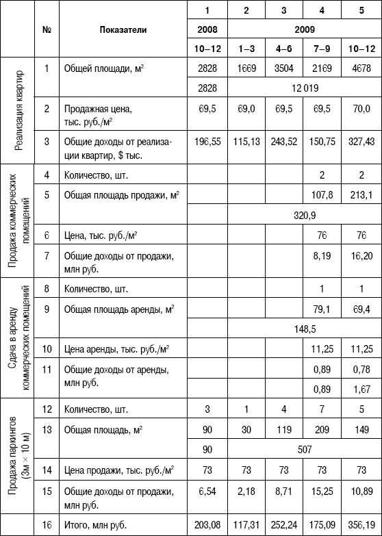 Таблица 8.3. Расчет доходов от продажи коммерческих помещений