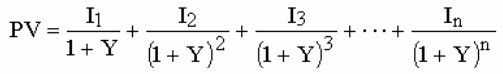 где PV – текущая стоимость, n – число периодов; Jn– доход n периода; Y – ставка дисконтирования.