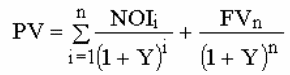То есть текущая стоимость недвижимости в соответствии с методом дисконтирования денежных потоков определяется как сумма текущих стоимостей доходов за каждый период владения и реверсии.