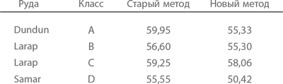 В одном из ранних примеров, которые Деминг использовал для иллюстрации своих аргументов относительно операциональных определений и «отсутствия истинных значений», он приводит цифры, касающиеся процентного содержания железа в руде, добываемой компанией Yawata Steel, и опубликованные 22 декабря 1955 г. Таблица, которую он приводит, такова.