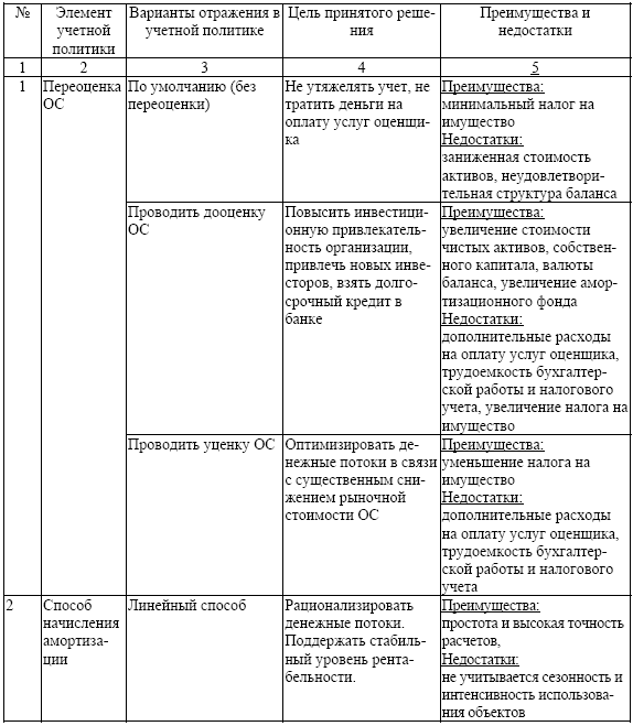 Основные элементы учетной политики и их влияние на показатели деятельности организаций