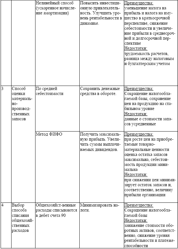 Основные элементы учетных методик и последствия выбора того или иного метода представлены в таблице 1.