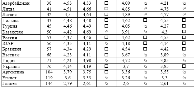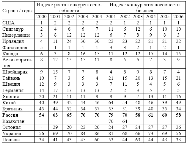 Источник: The Global Competitiveness Report 2001–2002. – Р. 32; The Global Competitiveness Report 2003. – Р. 4; The Global Competitiveness Report 2004–2005. – Р. xiii, – Р. 60.